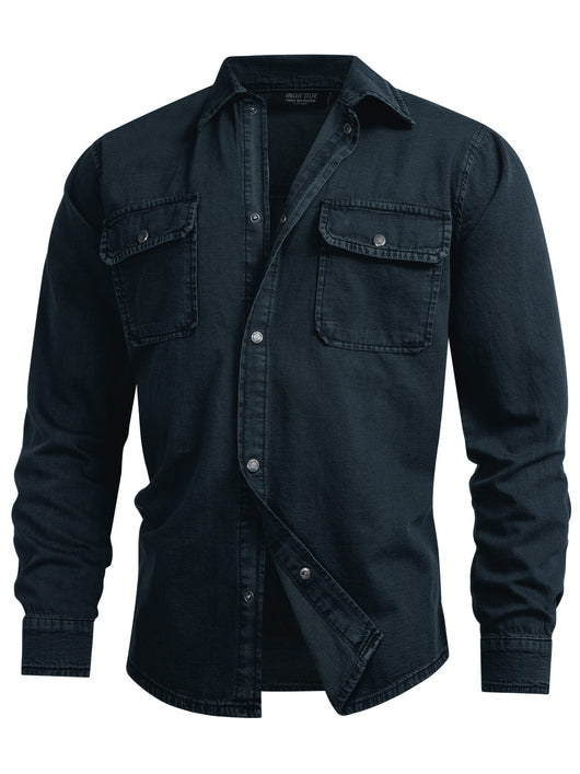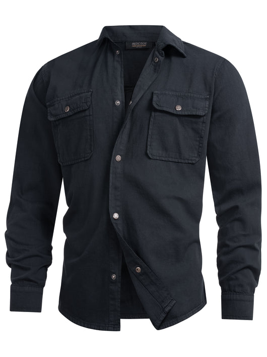 Das Jeanshemd INCooplon ist die perfekte Wahl für einen lässig-authentischen Look. Mit seinem klassischen Kentkragen, den zwei aufgesetzten Brusttaschen mit Patte und Druckknopf sowie der durchgehenden Knopfleiste überzeugt es mit funktionalem Design und maskuliner Ausstrahlung. Der Regular Fit sorgt für einen angenehmen Sitz, während das robuste Material aus 100 % Baumwolle ein natürliches Tragegefühl garantiert. Ob offen über einem T-Shirt oder geschlossen getragen – dieses Hemd ist ein vielseitiger Allrounder, der sowohl zu Jeans als auch zu Chinos hervorragend passt. Herren INCooplon Jeans-Hemd einfarbig mit 2 Brusttaschen aus 100% Baumwolle